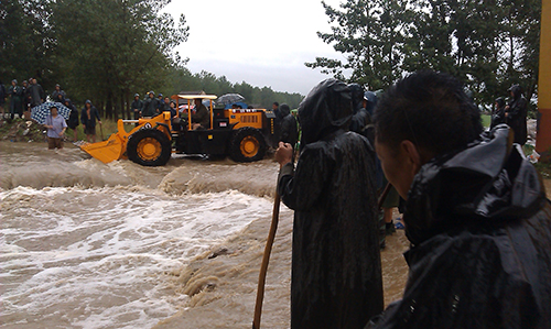 午夜精品视频APP小霸王立即投入到抗洪救災之中,主要負責物資的運輸、修複受損路段,以及鏟裝砂石料裝入運輸車輛等工作。在大坡度的防洪大堤麵前、麵對著濤濤江水,裝載機沒有打怵、機手更沒有害怕;午夜精品视频APP小霸王將一條條裝滿砂石的防洪編織袋投入滾滾的江水之中,成為抗洪搶險中的金剛!